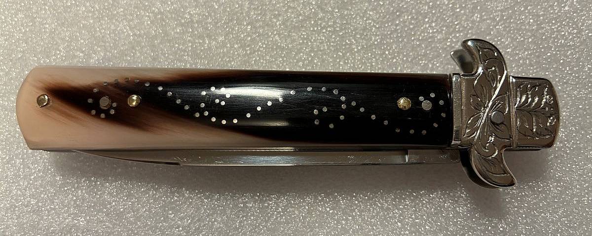 These knives use factory made parts, and can be ordered with almost any combination of scale material and embellishment.